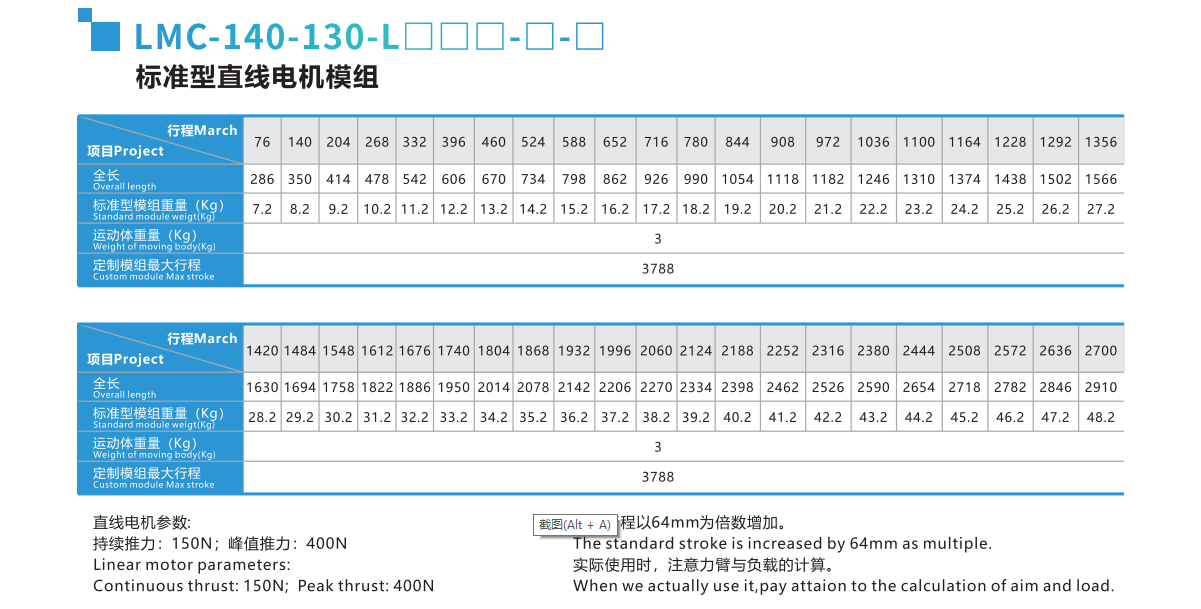 標(biāo)準(zhǔn)直線電機(jī)模組